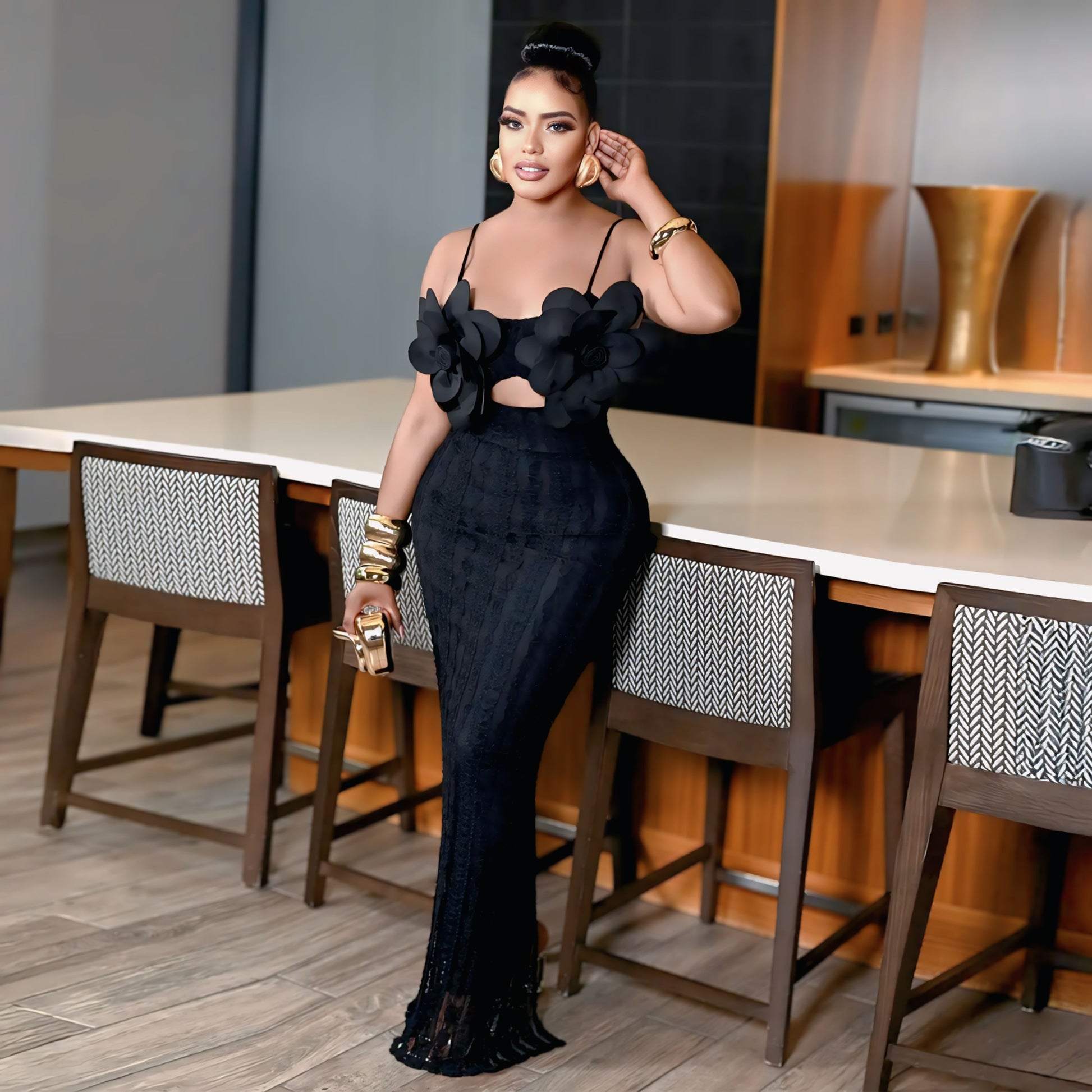 Step into elegance with the CX7513 Danielle Floral Applique Maxi Dress, crafted for women who love timeless sophistication. Designed with delicate floral applique details, this long maxi dress is perfect for formal dinners, birthday parties, evening gatherings & special occasions.