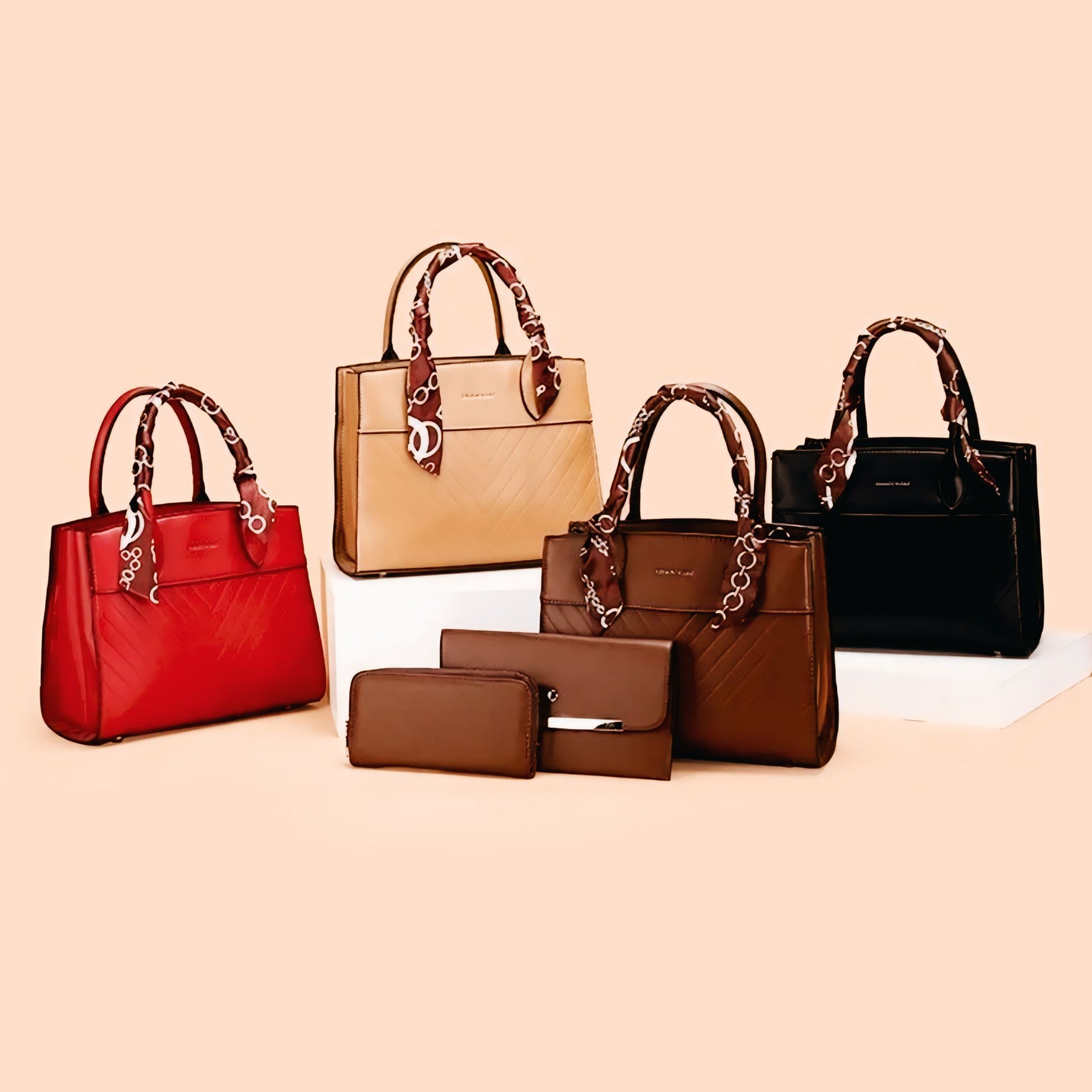 Luxevibe 2025 New Design High-Quality Large Capacity Silk Scarf Decor PU Women's Tote Bag